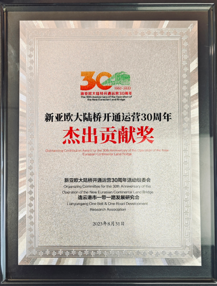 On the first day of the "2023 Belt and Road International Cargo Logistics Development Conference", Neptune Logistics Group was awarded the "Outstanding Contribution Award for the 30th Anniversary of the Opening and Operation of the New Asia-Europe Continental Bridge"!