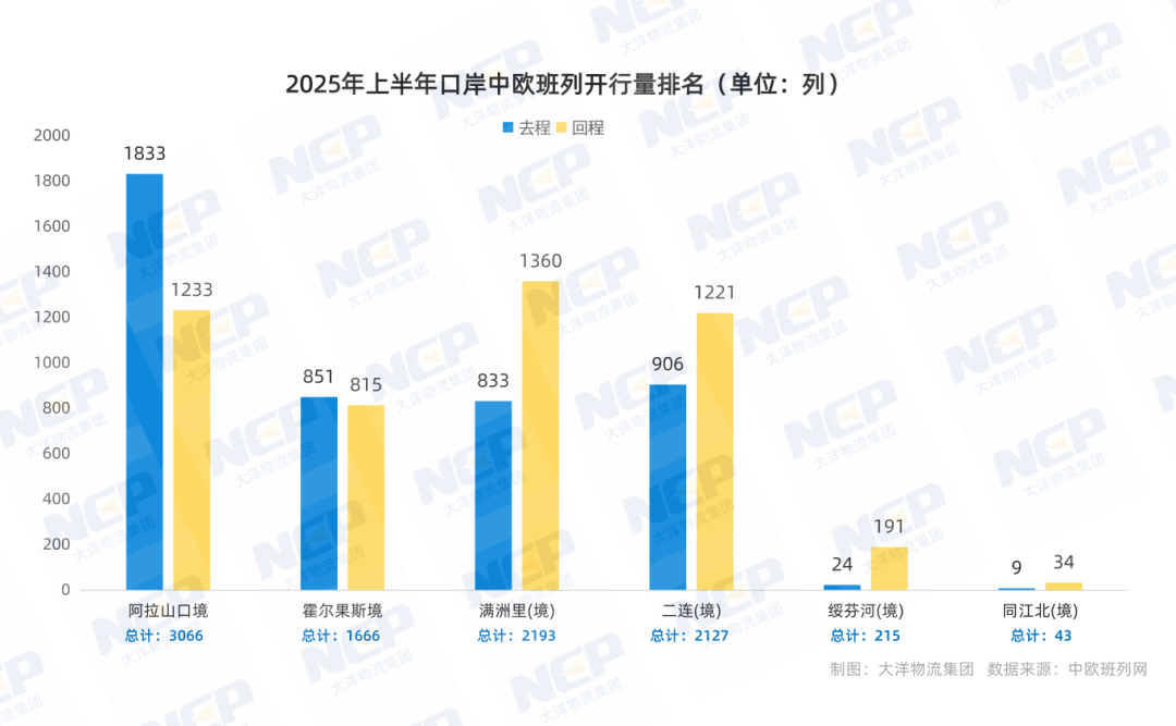There were 9310 trains bound to Central Europe, with a year-on-year decrease of 3.3%. Among them were 4456 outbound and 4854 inbound, with a year-on-year decrease of 16.5% and an increase of 13.1%, respectively.