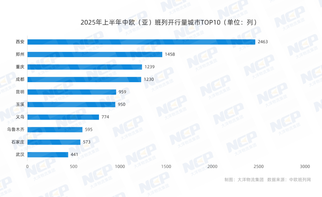 In the ranking of cities, Xi’an anchored its first place with the freight number of 2463, while Zhengzhou, Chongqing and Chengdu closely followed, which forming the top tier. The rise of Kunming and Yuxi into the top ten with a number of 959 and 950 highlighted the progress of cities in the South-Western Region. Yiwu ranked seventh with a number of 774, Urumqi, Shijiazhuang and Wuhan successfully into the first ten.