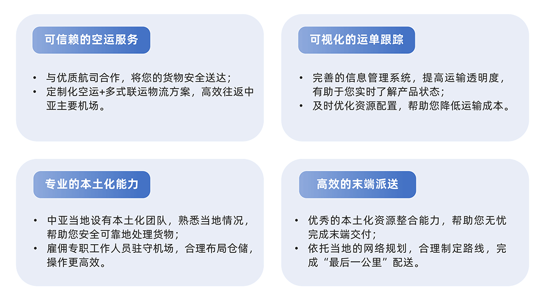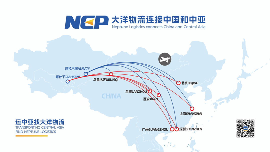 Сеть маршрутов воздушного коридора "Пояс и путь" Neptune Logistics в основном охватывает основные прибрежные города. Наши воздушные маршруты по Центральной Азии - это прямые рейсы, прибывающие в тот же день из крупных внутренних столиц, таких как Сиань, Ланьчжоу, Пекин, Урумчи и т.д. в Алматы/Ташкент: